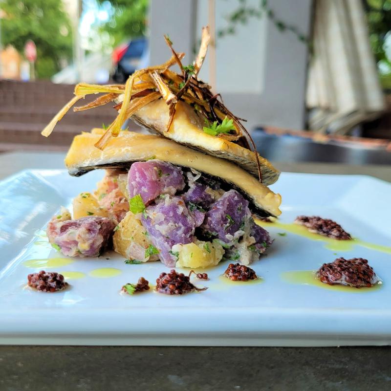 Had a great brunch/lunch on the patio with our adult kiddos and new pup. Food service was fast and definitely tasty plates. The sweet potato hash was a table favorite!!